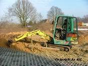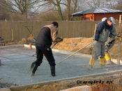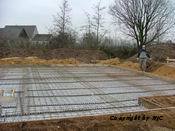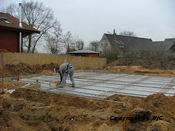 Der Beton kommt und die Bodenplatte kann gegossen werden.