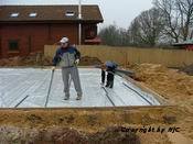 Die Abstandshalter kommen nun auf die Folie und dann werden die Stahlmatten als Bewehrung darauf gelegt